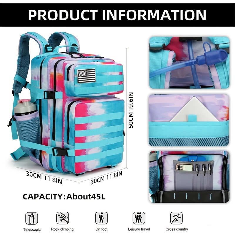 11.89gal Colour Plate Hiking Backpack Daypack Travel Sports For Camping Hiking O